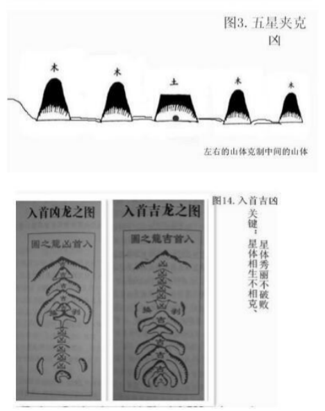 15.建房的龙脉入首处的吉凶分辨。①龙脉入首最后5节之内的星体(山体)要五行相生,不要五行相克;②龙脉入首最后5节内的星体(山体)秀丽漂亮不破败;