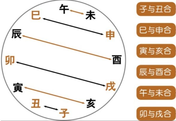 子丑合化土,寅亥合化木,卯戌合化火,辰酉合化金,巳申合化水,午未合化土。