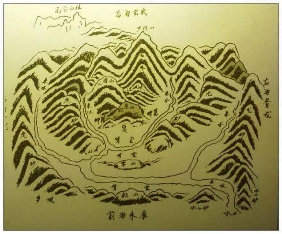 “真龙直出向前行,四向谩成龙虎穴”杨公说巨门星它不会在自己星体上直接结穴,看下面第二个图,真正的巨门结穴它会穿心而出,然后它不会在这里停止还会继续行走。这叫“土腹流金”。所以说:“真龙直出向前行”。 穿心而出之后,开始会变成一个龙虎环抱的穴场。