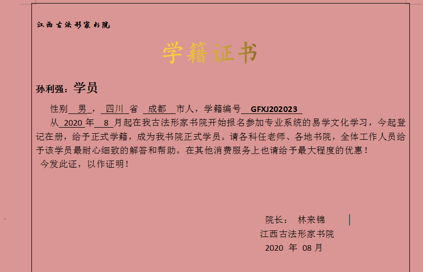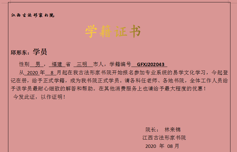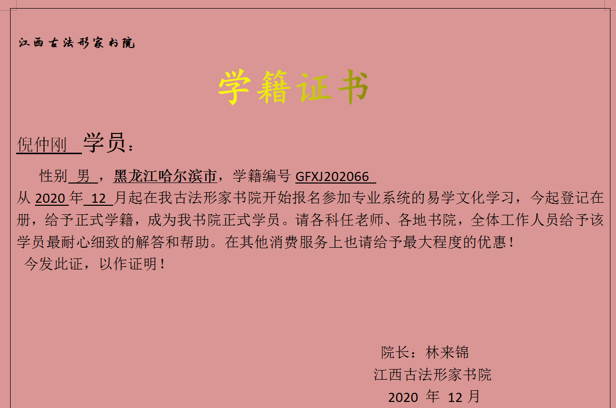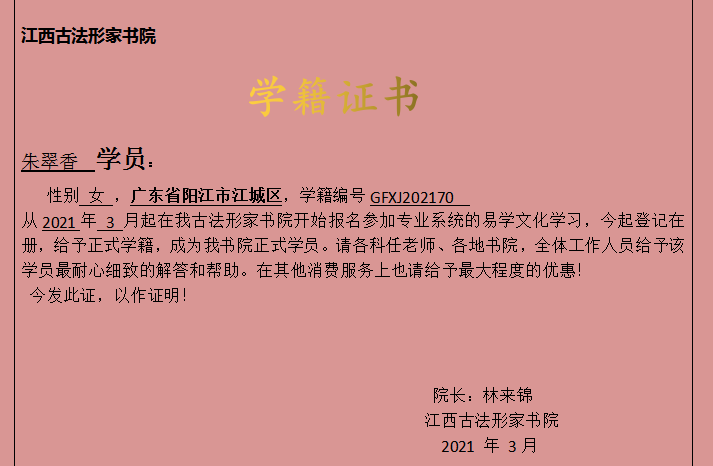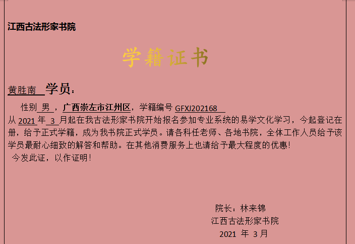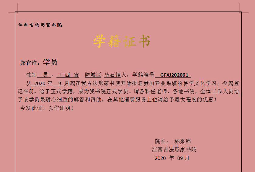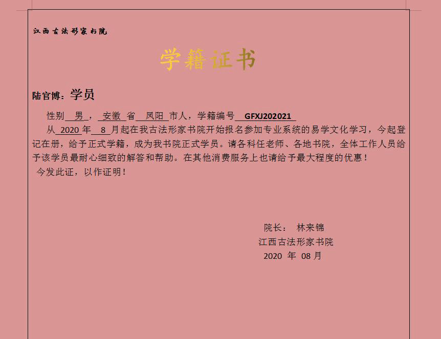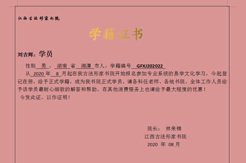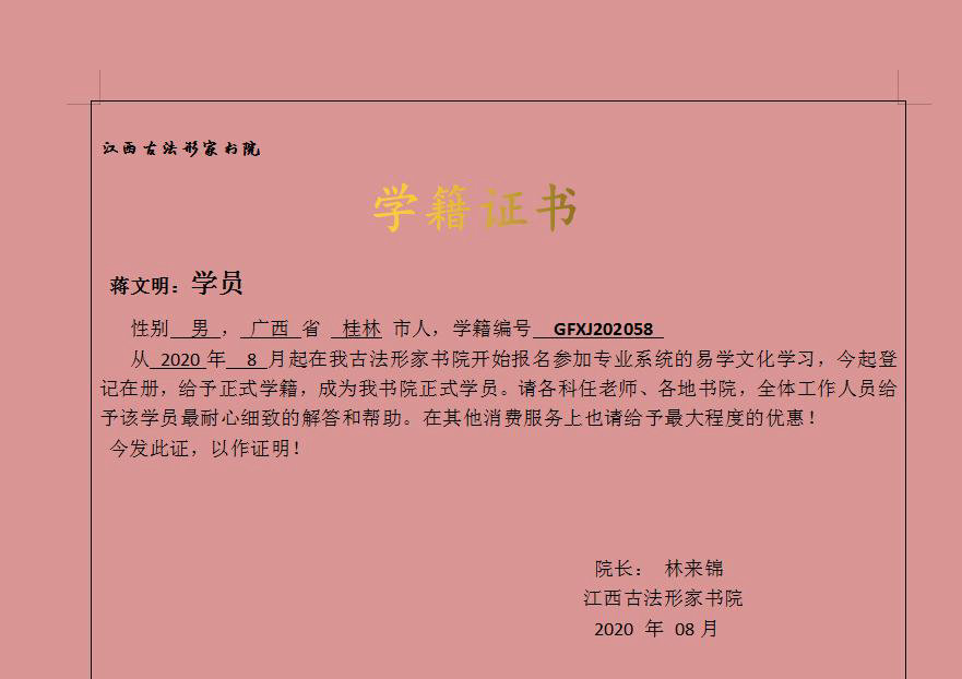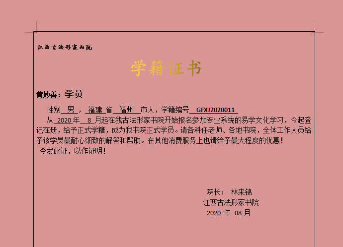 江西古法形家书院,是江西古法形家文化传媒有限公司创办的一家专门从事中国古代传统文化易经风水为主题,卜筮、命学等数术为辅导的文化传播机构,师资力量主要由一批技术过硬、资历丰富、正直博学的江西地理名师为基础作第一梯队,同时积极吸纳外省名师高手为书院充实强大的力量,在师资年龄上由老中青结合,在学术研究上形势和理气结合,在授课教学上有理论和实践结合,在信息网络形势下有线上和线下结合,我们一起同心协力为世界各地热爱传统易经风水、卜筮、命学等数术文化的人们提供一流的教学培训和一流的商业服务!我们坚持把“传播正统,高效,实用,易用的地理堪舆知识!”作为我们的精神之花,我们的目标就是一步一步的坚持把书院“精神之花”的种子,撒播到全国乃至全球的每一作城市落地生根!服务天下大众!