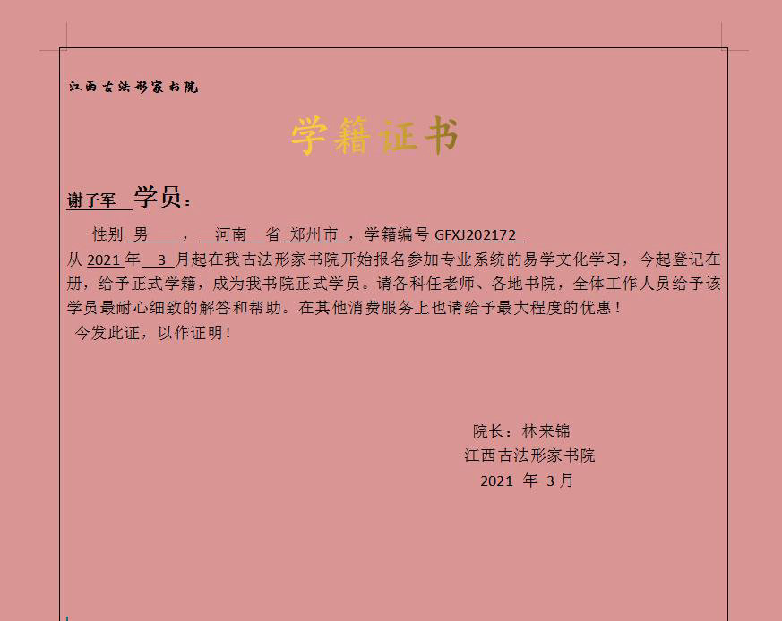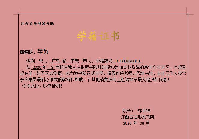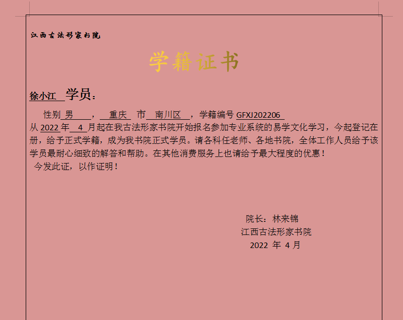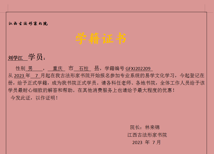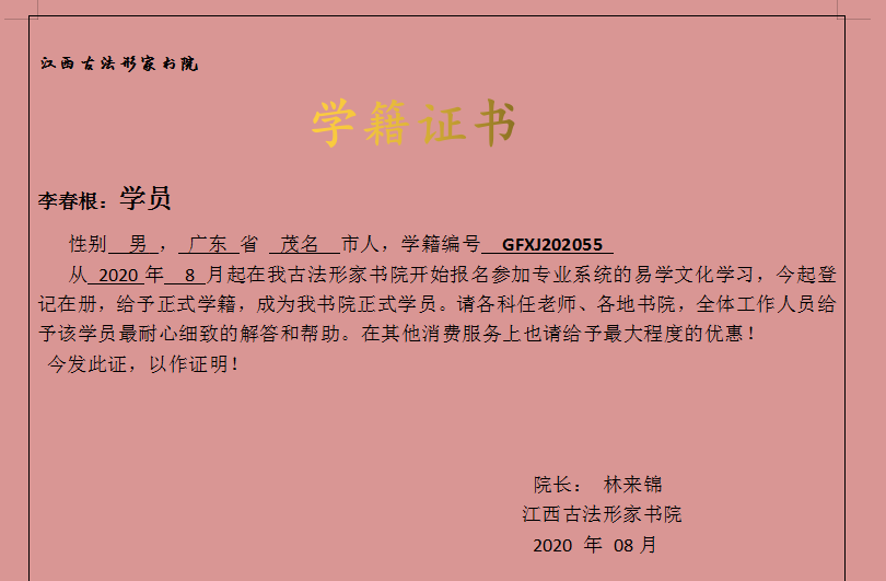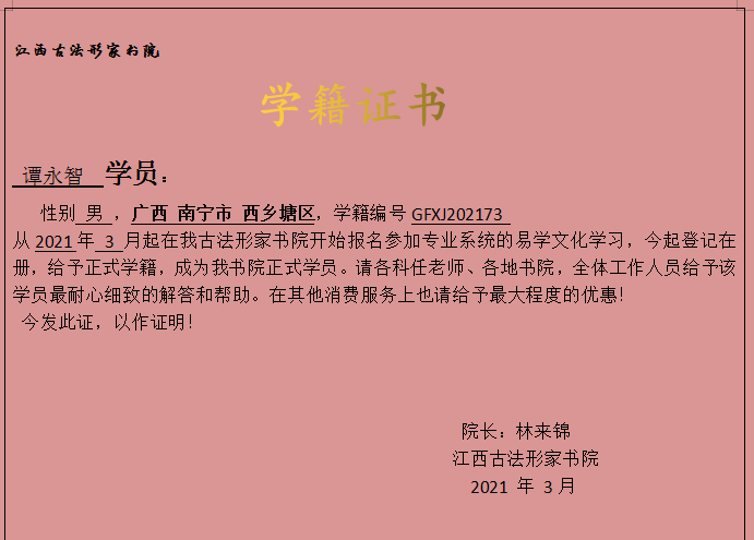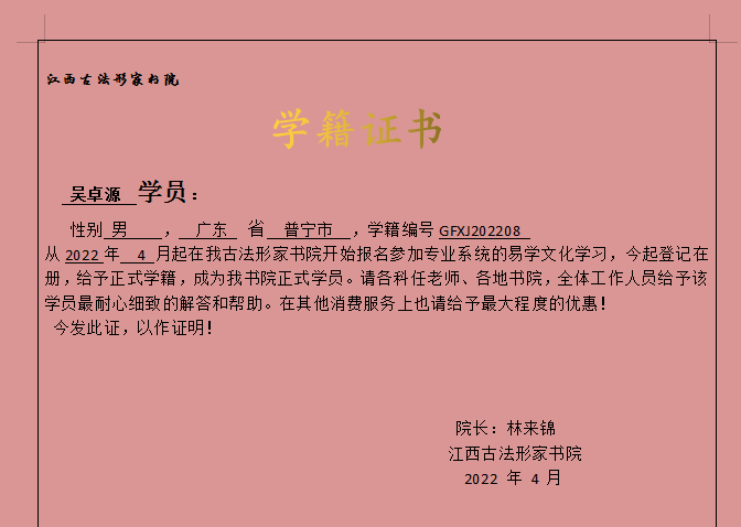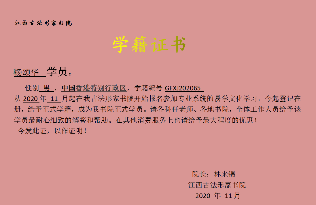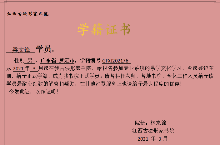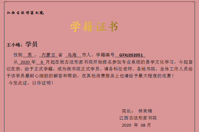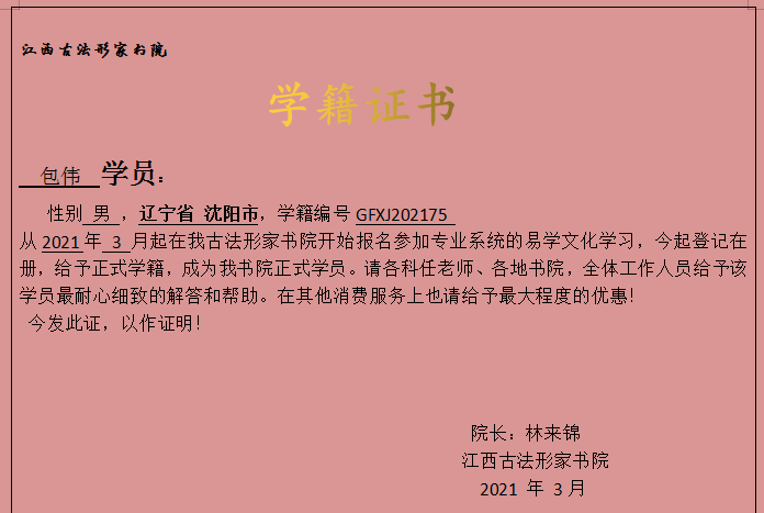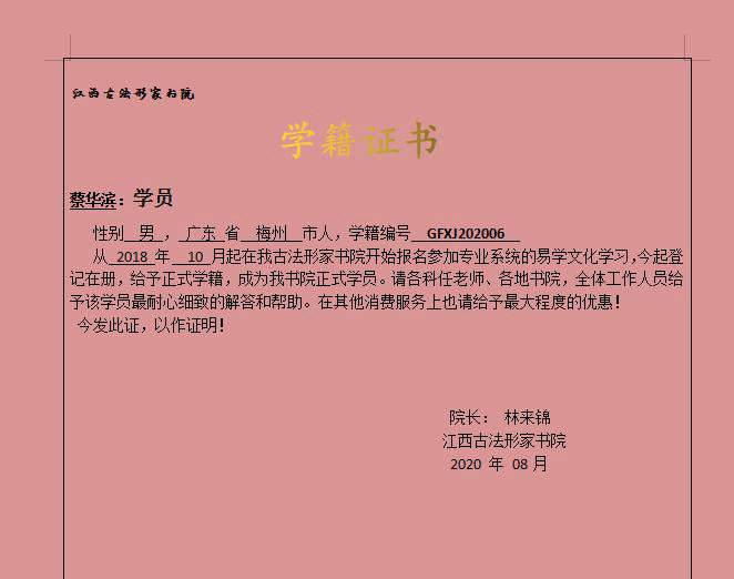 江西古法形家书院,是江西古法形家文化传媒有限公司创办的一家专门从事中国古代传统文化易经风水为主题,卜筮、命学等数术为辅导的文化传播机构,师资力量主要由一批技术过硬、资历丰富、正直博学的江西地理名师为基础作第一梯队,同时积极吸纳外省名师高手为书院充实强大的力量,在师资年龄上由老中青结合,在学术研究上形势和理气结合,在授课教学上有理论和实践结合,在信息网络形势下有线上和线下结合,我们一起同心协力为世界各地热爱传统易经风水、卜筮、命学等数术文化的人们提供一流的教学培训和一流的商业服务!我们坚持把“传播正统,高效,实用,易用的地理堪舆知识!”作为我们的精神之花,我们的目标就是一步一步的坚持把书院“精神之花”的种子,撒播到全国乃至全球的每一作城市落地生根!服务天下大众!