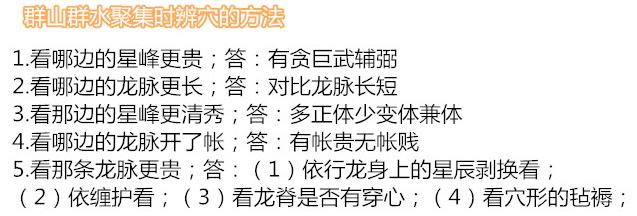 以上是杨公总结在遇到“群龙聚会”时辨别正穴的方法,下面是笔者在杨公理论基础上,遇到“群龙聚会”时辨别正穴的方法总结: